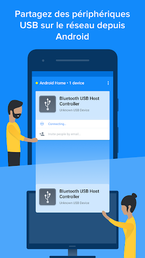 Si vous souhaitez accéder à des périphériques USB connectés physiquement à votre appareil Android depuis vos ordinateurs de bureau, veuillez acheter un abonnement FlexiHub (une version d'essai de 7 jours est disponible).