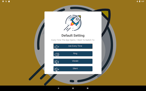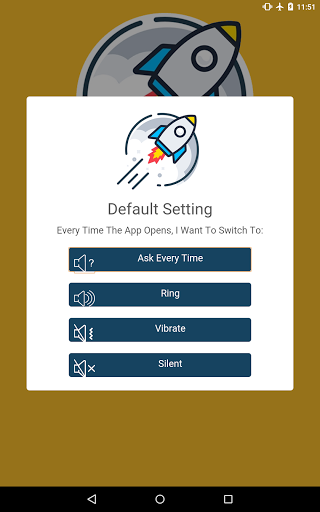 🔈❔ Added an ' Ask Every Time' option (as requested by users). - With this option selected, every time you launch the app you can choose to switch between Ring / Vibrate / Silent (instead of having a 1 tap default behaviour for the app)