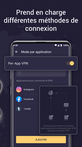 3. Mode par application. Vous pouvez définir des applications spécifiques pour contourner le VPN