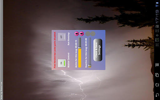 Has this ever happened to you?You are playing a nice audio file when you decided to simply turn off your screen just to save some battery power and after a short time you audio sound quits because of some other app that messes around with your Android device awake state. :You start an important data download that is supposed to take 12 hour to complete. You put your Android device down and get some tea or coffee and when you return to your device you find the thing has gone completely to sleep a few seconds right before the download was to finish. : NOOOOOOOOWell, this gem of a utility will keep that device from falling completely asleep if it supports running background services.With quot;Wake Up Phonequot; your Android device will not fall completely asleep. It will be woken up when you want it awake. You have complete control when you want this app to give your device a quot;Pinchquot; through the settings screen. You can even run it quot;Nonstopquot; if you need to do that.Note: The following parts of this FREE app are disabled, but the full version of the app has them enabled: quot;Run Nonstopquot; toggle button. quot;Inactive for this longquot; seek bar. up and down arrows next to the quot;Inactive for this longquot; seek bar.