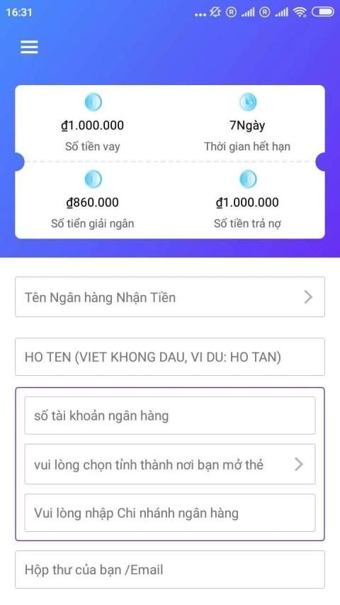 Số tiền vay: 500.000 đồng - 3.000.000 đồng.