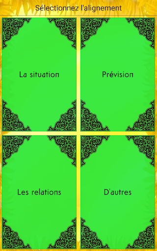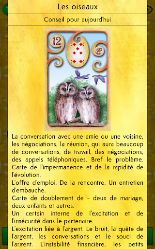 Prédictif le système développé par les français diseuse de bonne aventure, Marie Lenormand, permet de répondre à toute votre question dans des domaines tels que l'amour, le travail, la santé, l'avenir et la situation spécifique.