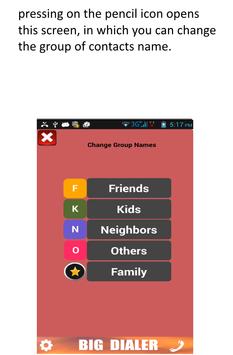 with an option of defining 4 more groups of contacts that you can open quickly.