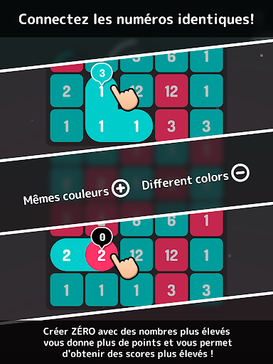 Si les tuiles sont de la même couleur, les nombres sont additionnés.