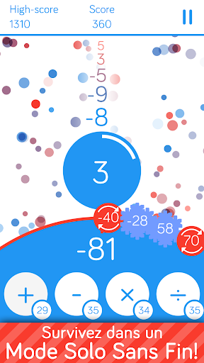 • Mode solo: Entre en competition avec toute la planète dans un mode de survie sans fin pour avoir le meilleur score possible, en utilisant l'addition, soustraction, multiplication et la division!