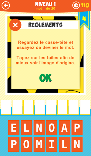 Réunissez-vous et devinez quel est le mot que représente l'image! Si vous êtes bloqué à un niveau demandez à vos enfants vous serez surpris de ce qu'ils peuvent accomplir!