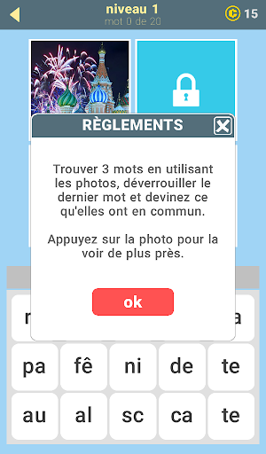 Trouver 3 mots en utilisant les photos, déverrouiller le dernier mot et devinez ce qu'elles ont en commun. Appuyez sur la photo pour la voir de plus près.