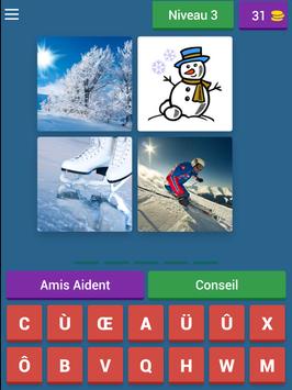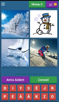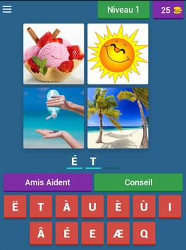 Comment jouer ? Regardez 4 images et devinez le mot qui les relie. Pour chaque mot que vous devinez, vous gagnez des pièces qui vous aideront à atteindre de nouveaux niveaux. Et en plus c'est gratuit.