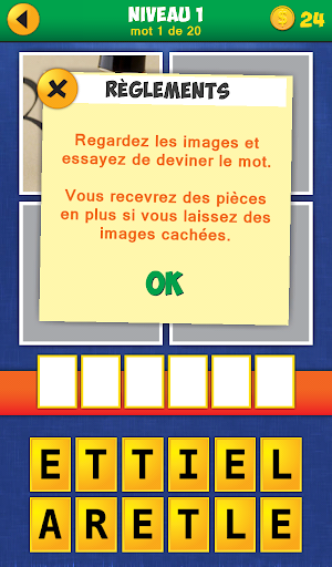 • Devinez le mot avec le moins d'images et gagner des jetons supplémentaires!