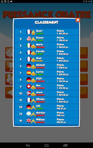 - Plus tu récoltes te points au cours de tes parties de "Puissance Quatre", plus ton rang de classement s'élève.