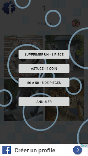 la possibilité de supprimer une image, cette opération peut être effectuée 2 fois par question, mais seulement si 50 à 50 n'a pas été utilisé, ce qui vaut 3 pièces.