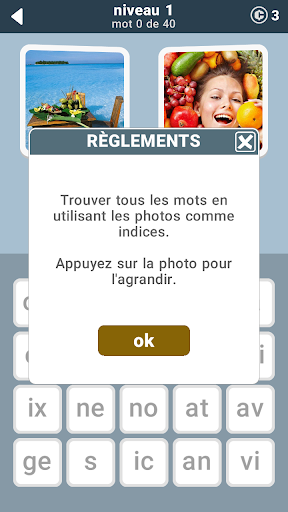 2 mots pour chaque image, 40 mots par niveau, pour un grand total de 680 mots dans ce jeu de mots! Pouvez-vous tous les trouver? Parfois, vous devez penser au-delà des réponses évidentes. Bonne chance!