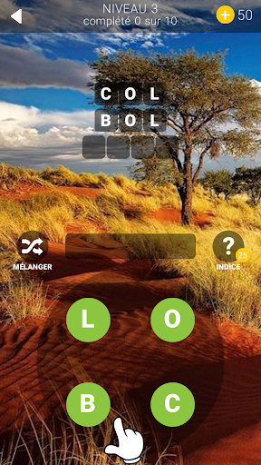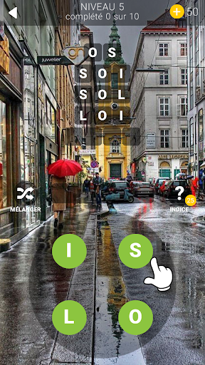 A chaque niveau, connecte les lettres et trouve tous les mots.