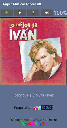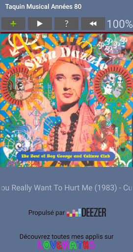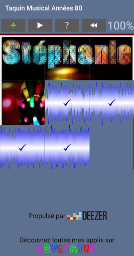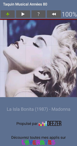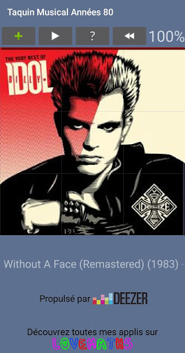 Cette appli choisit une chanson parmi les hits des années 80 et crée un puzzle en en mélangeant des extraits. Résolvez simplement le puzzle pour retrouver le morceau complet. Pressez le bouton ' ' pour démarrer