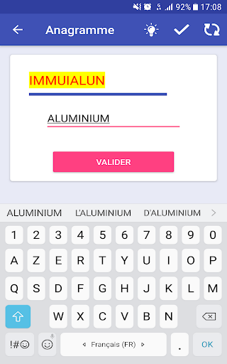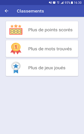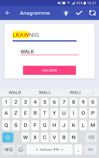 Essayez de trouver le maximum de mots pour être le roi d'Anagramme et débloquer toutes les réussites. Atteignez le sommet des classements (le plus grand nombre de points, le plus de mots trouvés et le plus de jeux joués) sera également un grand défi.