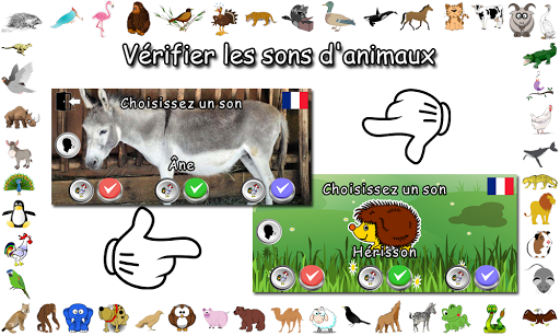3) Vérifiez les sons des animaux. Ici, vous devrez également tester vos connaissances: vous verrez un animal, entendrez comment il s'appelle et vous devez indiquer le son de cet animal.