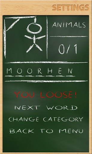 Two players mode allows you and a friend to play Hangman together with one device. One person enters a word and the other tries to guess it.