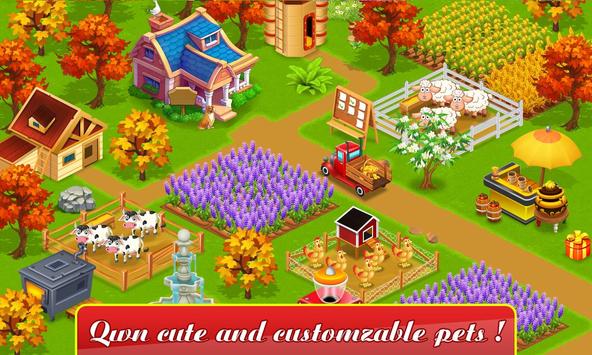 farm land. Do everything from harvest, farming in your lush big farm green land family dream farm, cultivate and harvest the fresh crops like wheat, corn, coffee, tomato, kiwi & strawberry in village. Enjoy the world of cultivation, farming, raise cute frenzy animals like chickens, goats and cows, do farming, harvest diverse fresh crops in village. Enjoy country life, become a happy farmer, work day & night to harvest, cultivate & do farming in your own farm.