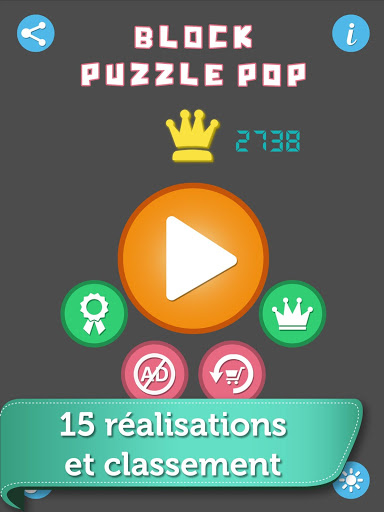 Puzzle De Bloc Pop est un jeu de puzzle simple avec aucune limite de correspondance des couleurs et de temps. Remplissez la ligne ou colonne de briser les blocs. il est un additif jeu de puzzle bloc. les blocs de plus vous cassez plus les points que vous obtiendrez.