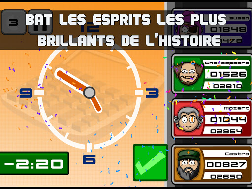 - Mode concours : Affronte les génies les plus intelligents de l'histoire et montre qui est le plus stupide.