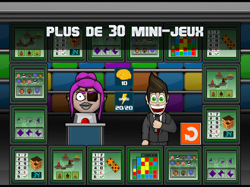 Dans Brain Battle Show 3, tu participeras à un programme télévisé du futur où tu mettras à l’épreuve ton cerveau contre les génies les plus brillants de toute l'histoire.