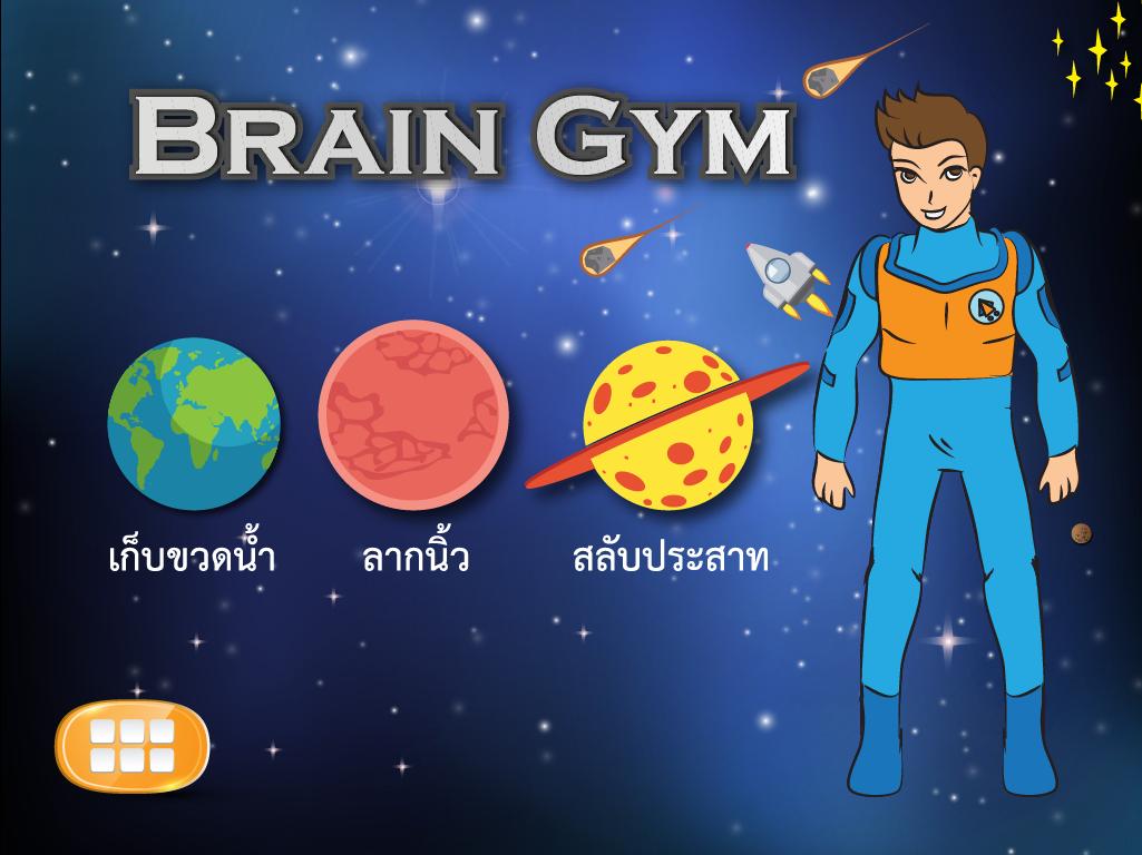 ผูเลนจะตองเลนเกมเรียงตามลําดับ โดยปฏิบัติกิจกรรม Brain Gym เพื่อเสริมสรางสมองของนักบินที่ถูกสัตวประหลาด ต่างดาวดูดสมองไปใหกลับคืนมา และสามารถใชอาวุธในยานอวกาศที่ตองกดปุมพรอมกัน 2 คนจึงจะกําจัดสัตวประหลาดได้
