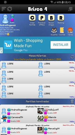 - Invite your friends to play brisca