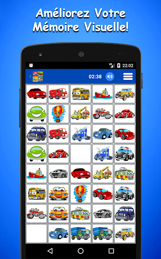 Le Jeu De Mémoire De Voitures Pour Enfants est l'un des jeux de développement d'intelligence et d'amélioration de la mémoire visuelle les plus complets. Associez des centaines d'images et développez votre intelligence, améliorez votre mémoire. C'est un jeu de plateau classique de notre enfance. Le jeu consiste en deux modes :