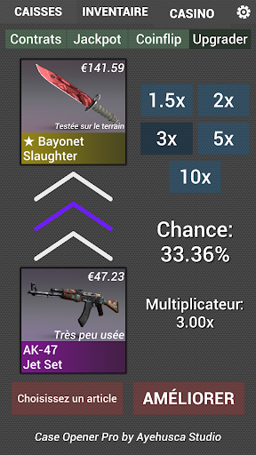 • Upgrader - Mettez à niveau vos articles avec les multiplicateurs choisis • Système d'articles comprenant la qualité de l'article, l'usure et les options STATTRAK ™ + SOUVENIR