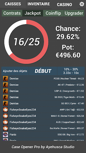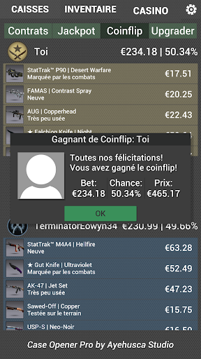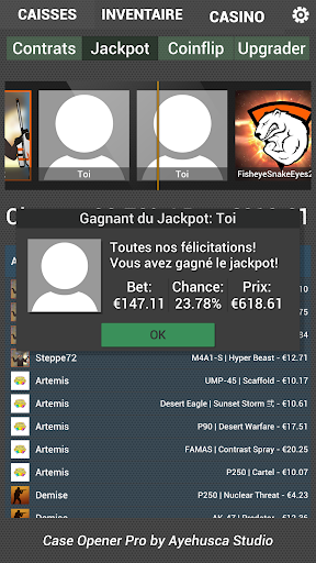 • Ouverture de cas réaliste et animations Jackpot