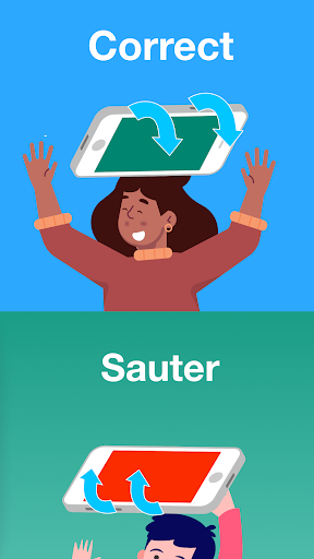 Si tu trouves un mot, incline le smartphone vers l'avant et le mot suivant apparaîtra. Si tu ne le sais pas, tu peux le passer en inclinant le smartphone vers l'arrière.