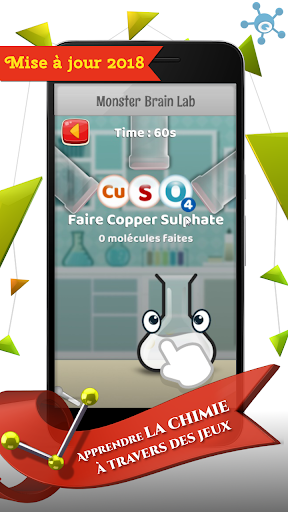 Le jeu de chimie de laboratoire offre une manière amusante d'apprendre des composés chimiques et des formules chimiques.