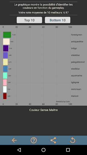 Le menu "Statistiques" affiche le score de perception des couleurs cumulatif de l'utilisateur, basé sur le jeu de l'utilisateur.