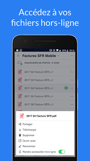 - Accéder à vos documents n’importe quand, n’importe ou même en mode avion depuis votre bureau, votre smartphone ou tablette