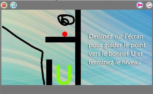- Dessinez sur l’écran pour guider le point vers le bonnet U et terminez le niveau