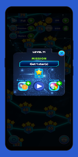 Complete various levels by connecting 3 or more of the same coins to destroy them. Each level allows you to earn real cryptocurrency PHT while playing a beautiful and futuristic game. Each level has a specific mission in order to complete it. The more stars you get, the more PHT you earn. There are various items to help If you get stuck or want to progress faster.