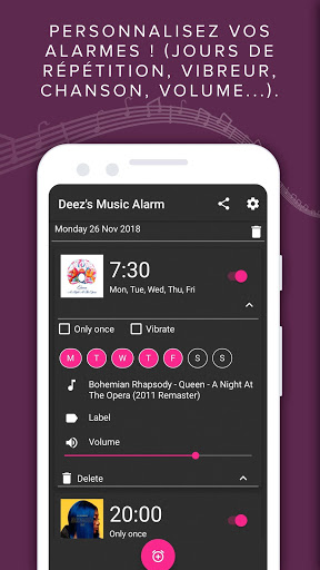 - Faites jouer votre alarme tous les lundi, jeudi, vendredi, bref aux jours que vous voulez ! Pas besoin de régler une alarme encore et encore. Réveillez-vous avec de nouvelles chansons chaque jour, fournies par