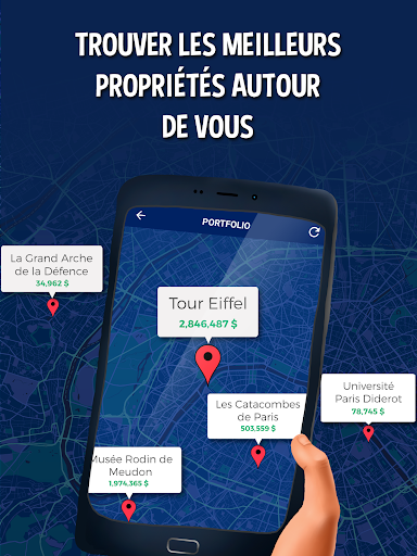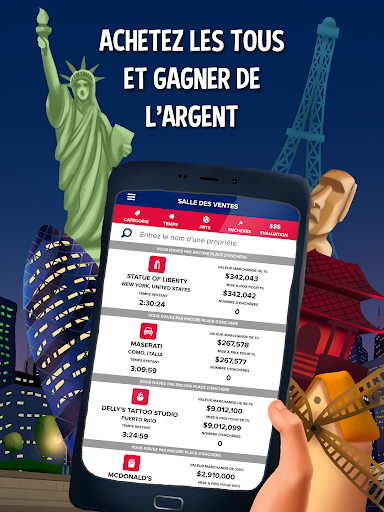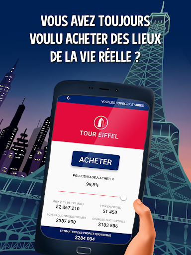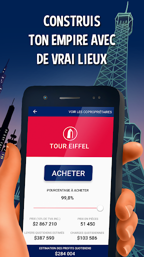 Achetez Times Square à New York, échangez-le contre la Tour Eiffel à Paris, vendez-la et achetez-vous une banque d'investissement à Londres. Ou achetez des propriétés à proximité de votre maison, école, ou bureau en vous localisant. Quels que soient les endroits du monde réel que vous acquérez, vous devrez jouer vos meilleures cartes afin de devenir le meilleur propriétaire du monde !