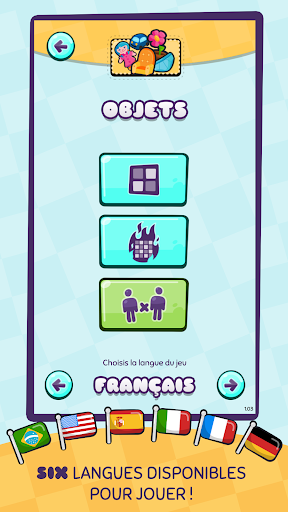 Vous pouvez jouer en espagnol ou dans 5 autres langues pour vous entraîner et apprendre de nouveaux mots : anglais, portugais, italien, français et allemand.