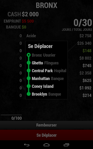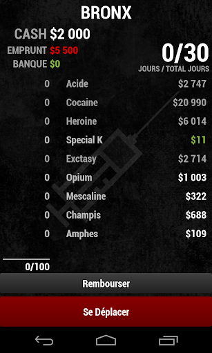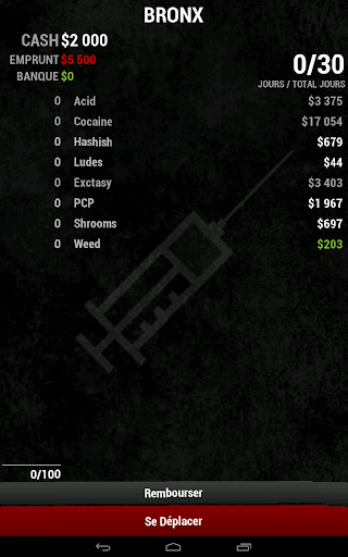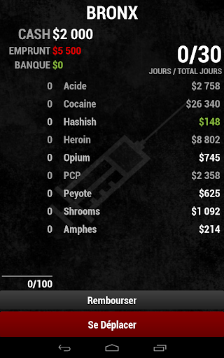 Dans DopeWars, tu es un dealer de drogues te déplaçant d'un quartier de New York à un autre, achetant et revendant de la drogue pour gagner le max de cash.