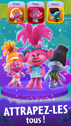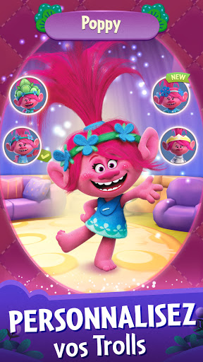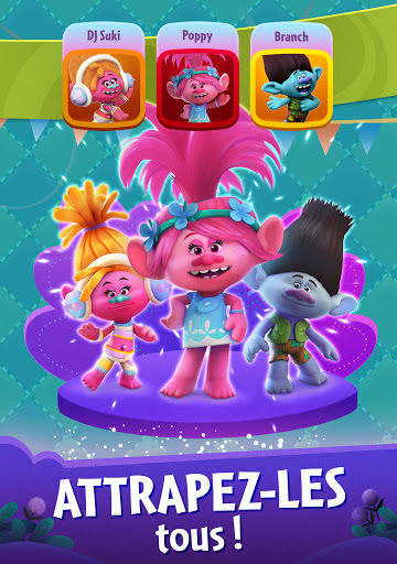 • Collectionnez vos Trolls préférés : collectionnez des stickers pour ajouter Poppy, Branche, DJ Suki et d'autres encore à votre collection de Trolls et éclater des bulles tous ensemble