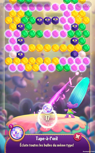 Éclatez des bulles de la même couleur et traversez les niveaux pour gagner des récompenses ! Collectionnez de nouveaux Trolls qui vous accompagneront dans votre aventure ! Dans ce jeu de bubble shooter et de casse-tête, chaque Troll dispose de pouvoirs uniques pour vous aider à surpasser n'importe quel défi ! Modifiez vos Trolls pour créer l'équipe qui vous correspond le mieux !