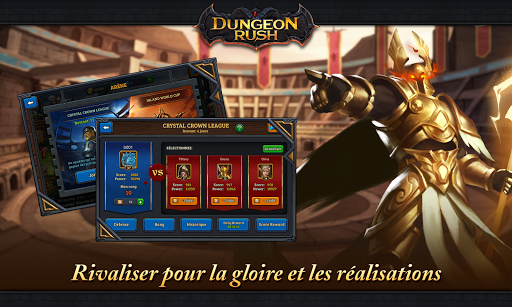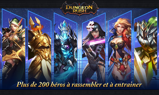 Collectionner des héros légendaires, former une équipe de combatans aguerrie, défier d'autres joueurs, accomplir des réalisations légendaires. Vous pouvez également former une confrérie avec d'autres joueurs afin de gouverner l'univers Donjon de Rush!