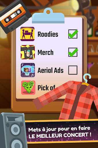 • Améliore ton GROUPE : ajoute des roadies, de nouveaux instruments et des membres : du second guitariste acoustique au CHANTEUR principal !
