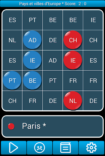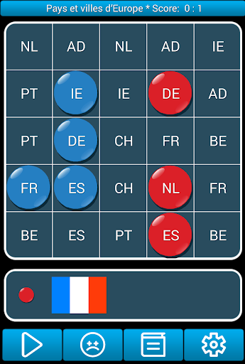 Le but du jeu est d'alliner 4 jetons de la même couleur sur une grille avec les abréviations des noms de pays européens.