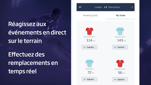 Avec l’aide du score en direct, tu pourras suivre ta position et ton rang en temps réel. Avec notre notification de buts, tu ne rateras aucun but ou remplacement et tu pourras aussi réagir en temps réel. L’assistant d’équipe et les statistiques détaillées te permettront de prendre des décisions et tu peux gagner de gros prix avec nos événements de match ! Gagneras-tu la Coupe du Monde dans Live Football Manager ? Seras-tu le coach du mois dans le meilleur jeu fantastique de football de l’année ?