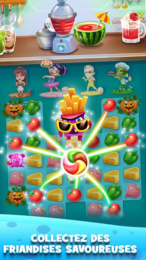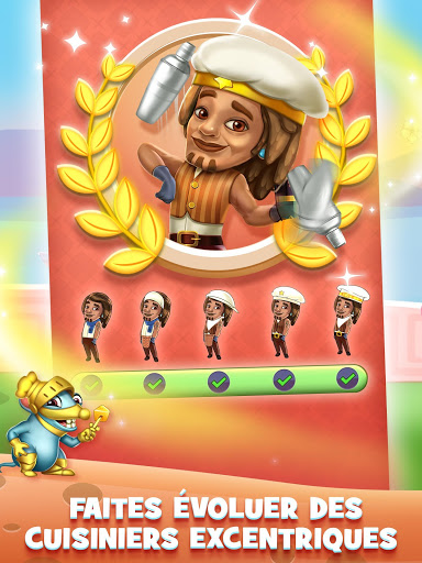 ASSORTISSEZ, CUISINEZ et COLLECTEZ ! C’est le secret pour devenir un Chef Fantastique. Associez des ingrédients, cuisinez-les et collectez vos étoiles ! Frayez-vous un chemin à travers les obstacles et les flaques d’huile, et attention au rat odieux. Gagnez des Galons de Chef pour prouver votre capacité à préparer des PLATS FANTASTIQUES !
