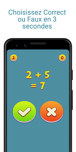 Un simple jeu de calcul mathématique pour tester et développer des compétences afin de résoudre rapidement des exemples. Le jeu n'a qu'un seul niveau, ce qui vous oblige à ajouter rapidement deux nombres et à décider si le résultat est correct ou faux. Trois secondes sont données pour chaque question. À la fin des trois secondes ou lorsque vous avez cliqué sur le mauvais bouton, le jeu se termine.