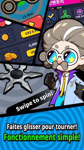1) Faites glisser le doigt sur l'écran pour faire tourner le spinner et gagner de l'or. Vous pouvez acheter de nouveaux spinners avec cet or dans la boutique.