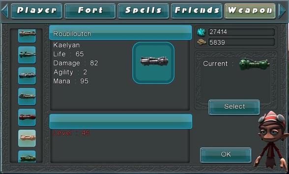 - vous gagnez des cristaux et de l'argent pour augmenter ensuite vos capacités (vie du fort, mana, vitesse des tirs...)
